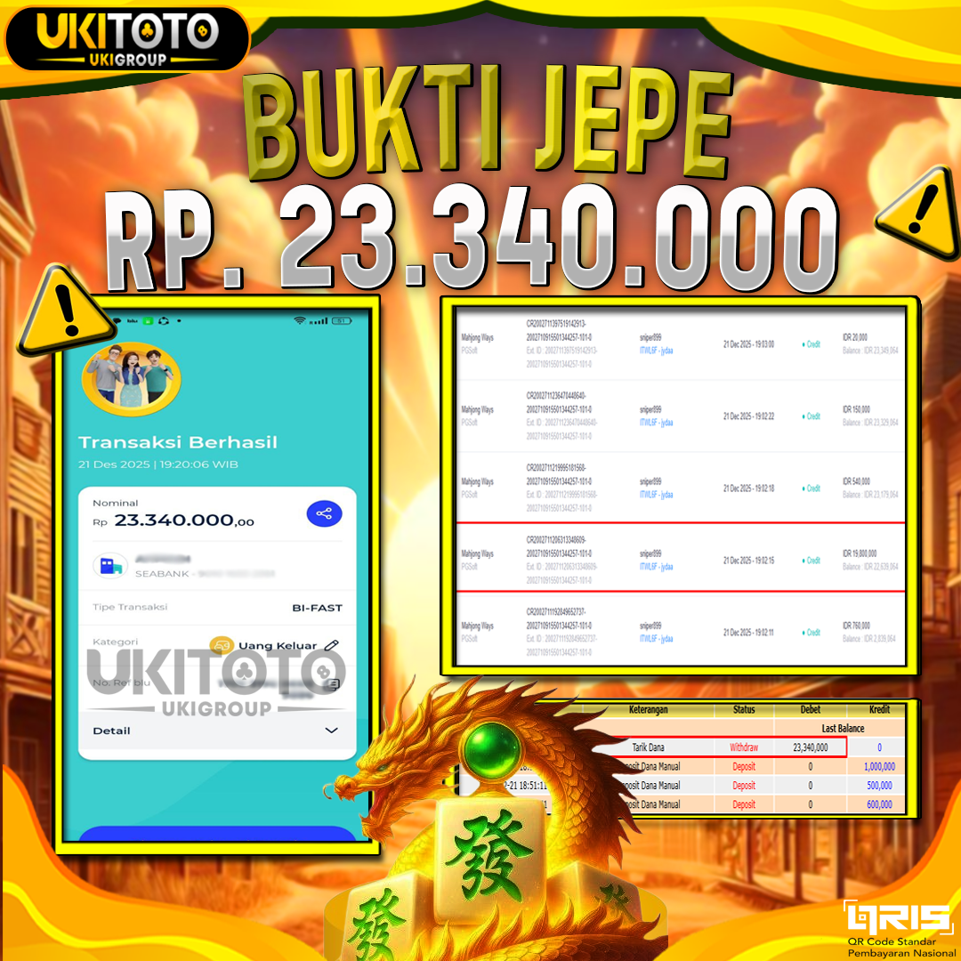 Selamat kepada User id : SNIXXXR899 Telah berhasil mendapatkan kemenangan besar pada permainan JACKPOT SLOT MAHJONG WAYS 2 Rp.23,340.000, Setelah mengisi formulir withdraw dengan kurung waktu hanya 5 – 10 menit pihak UKITOTO sudah melakukan transfer kepada pemilik Userid dan dana sudah dapat di cairkan oleh pemenang. Bukti pembayaran yang kami berikan merupakan bukti pembayaran yang SAH / VALID yang langung di dapatkan melaui tanda transfer transaksi dari Bank yang di tuju. Kami mengucapakan banyak Terima Kasih Kepada pemenang karena sudah mempercayakan kami sebagai Bandar Tepercaya yang membayar semua kemenangan member hingga lunas.
