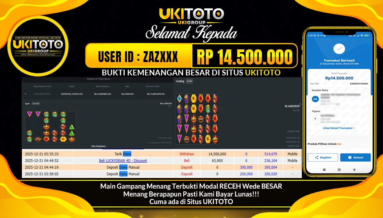 UKITOTO JACKPOT SLOT GATES OLYMPUSΒ 1000 Rp.14,500,000 DIBAYAR LUNAS.