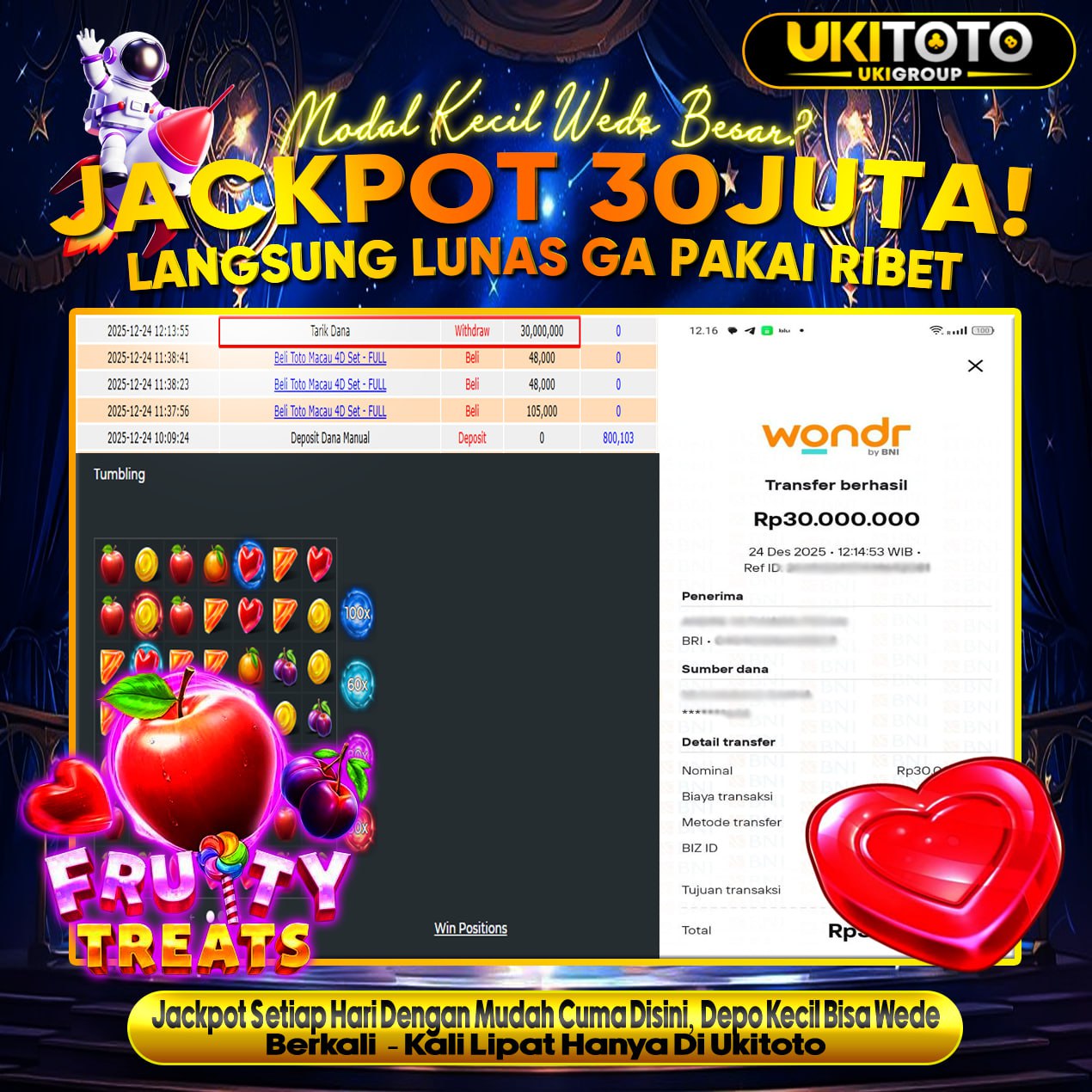 UKITOTO JACKPOT SLOT FRUITY TREATS Rp.30,000.000 DIBAYAR LUNAS.