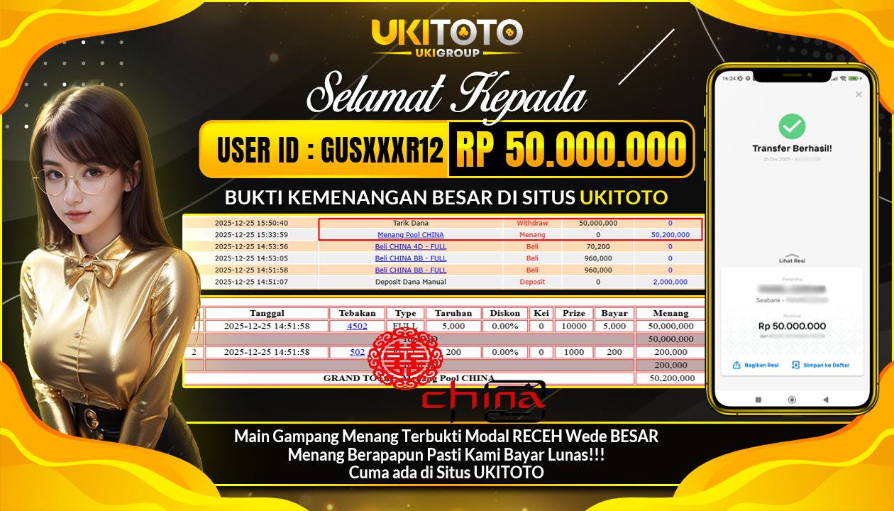 UKITOTO JACKPOT TOGEL PASARAN CHINA POOLS Rp.50,000.000 DIBAYAR LUNAS.