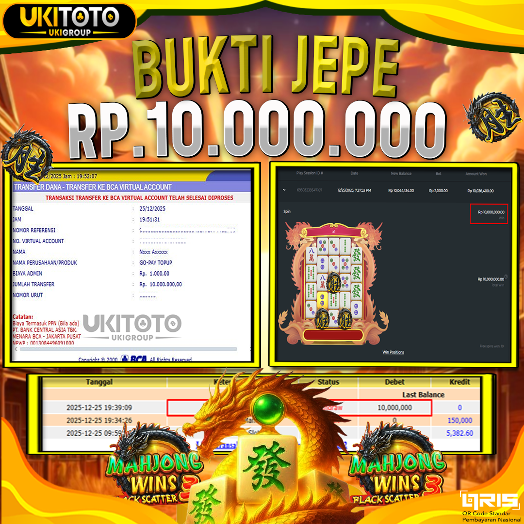 Selamat kepada User id : AZHXXX Telah berhasil mendapatkan kemenangan besar pada permainan JACKPOT SLOT MAHJONG WINS 3 BLACK SCATTER Rp.10,000.000, Setelah mengisi formulir withdraw dengan kurung waktu hanya 5 – 10 menit pihak UKITOTO sudah melakukan transfer kepada pemilik Userid dan dana sudah dapat di cairkan oleh pemenang. Bukti pembayaran yang kami berikan merupakan bukti pembayaran yang SAH / VALID yang langung di dapatkan melaui tanda transfer transaksi dari Bank yang di tuju. Kami mengucapakan banyak Terima Kasih Kepada pemenang karena sudah mempercayakan kami sebagai Bandar Tepercaya yang membayar semua kemenangan member hingga lunas